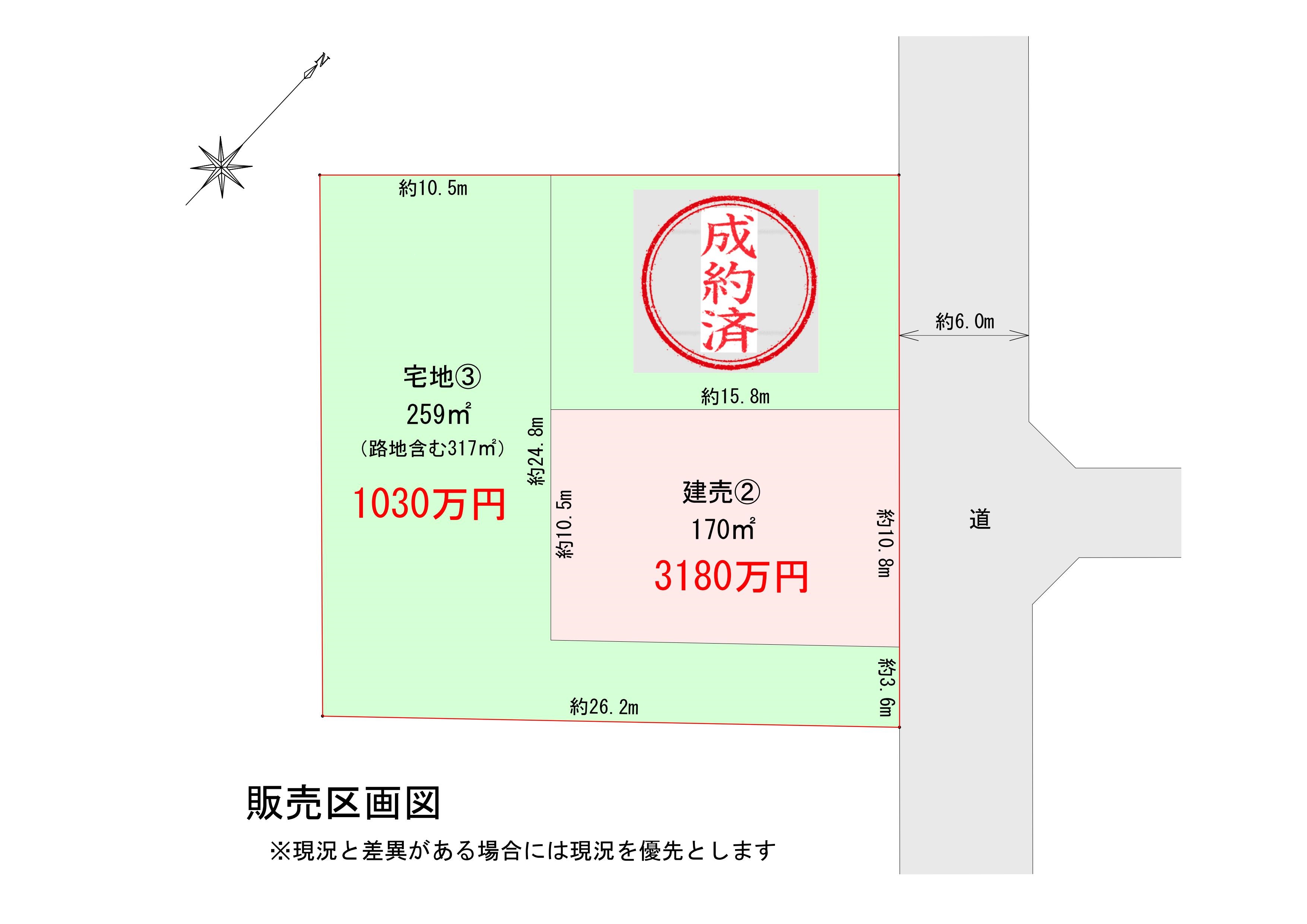 ①成約済 ②170㎡(約51坪)③259㎡(約78坪)